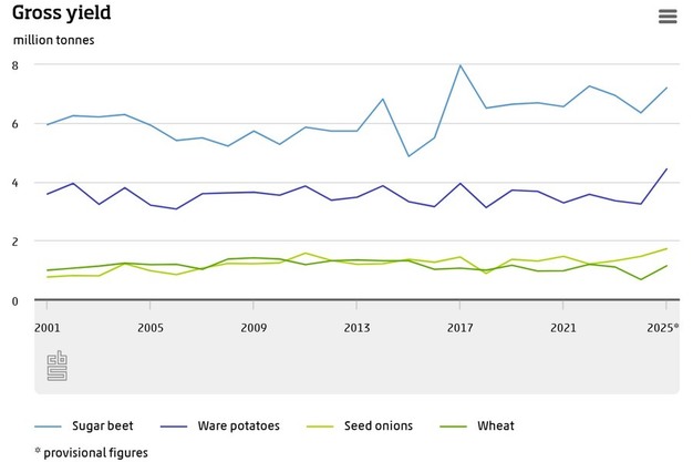Gross yields for ware potatoes and seed onions in the Netherlands have reached their highest levels in 25 years, according to provisional 2025 crop yield estimates from Statistics Netherlands (CBS).
