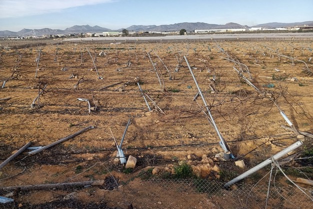 However, the damage extends beyond the fruit and plants. In the Vinalopó Mitjà region, especially in Monforte del Cid, mesh structures used for cultivating table grapes have also been significantly affected by this phenomenon.