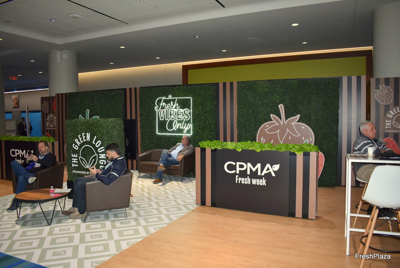 Relaxation lounge just outside the entrance of the show floor, sponsored by Mucci Farms.
