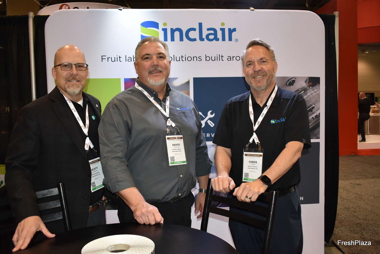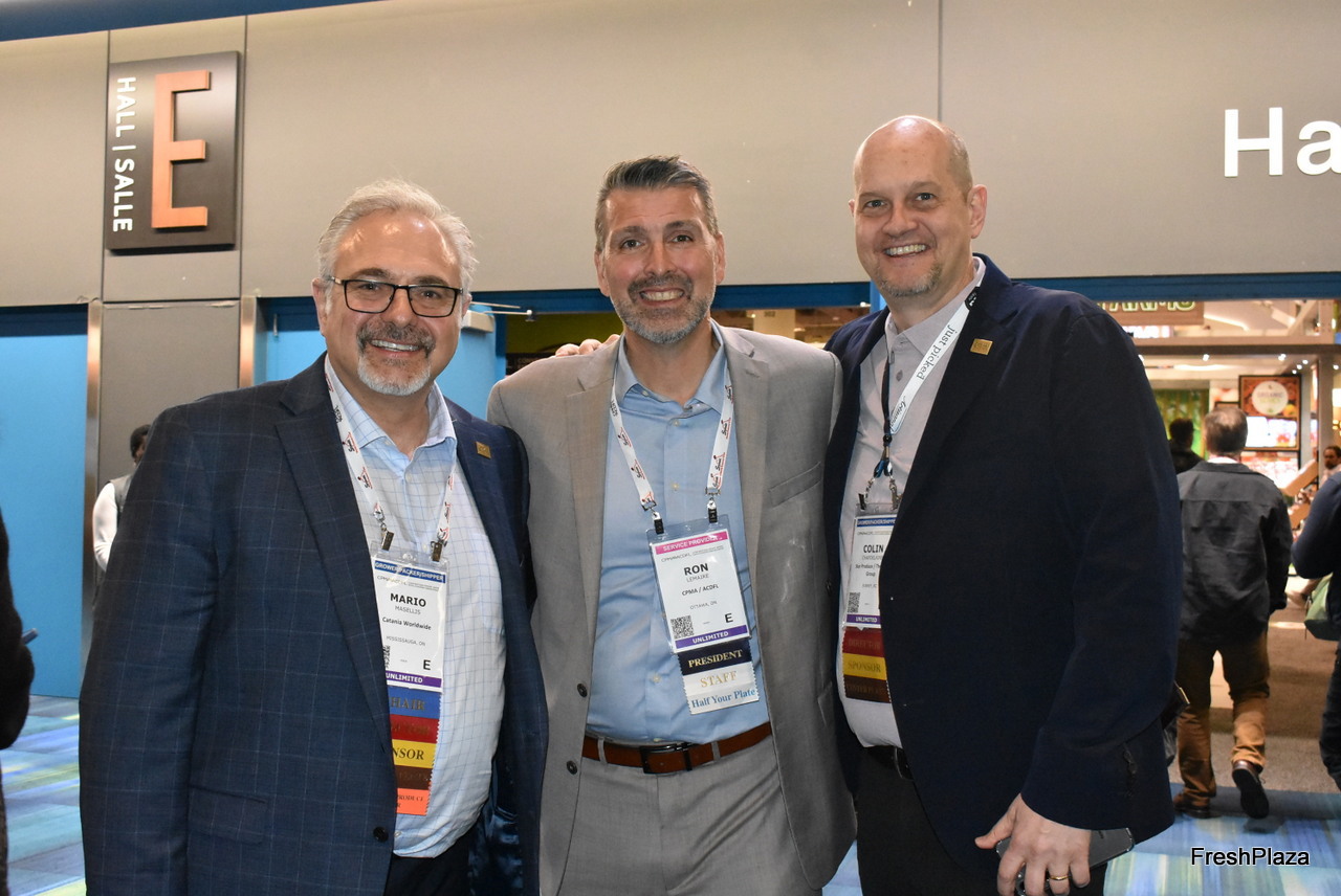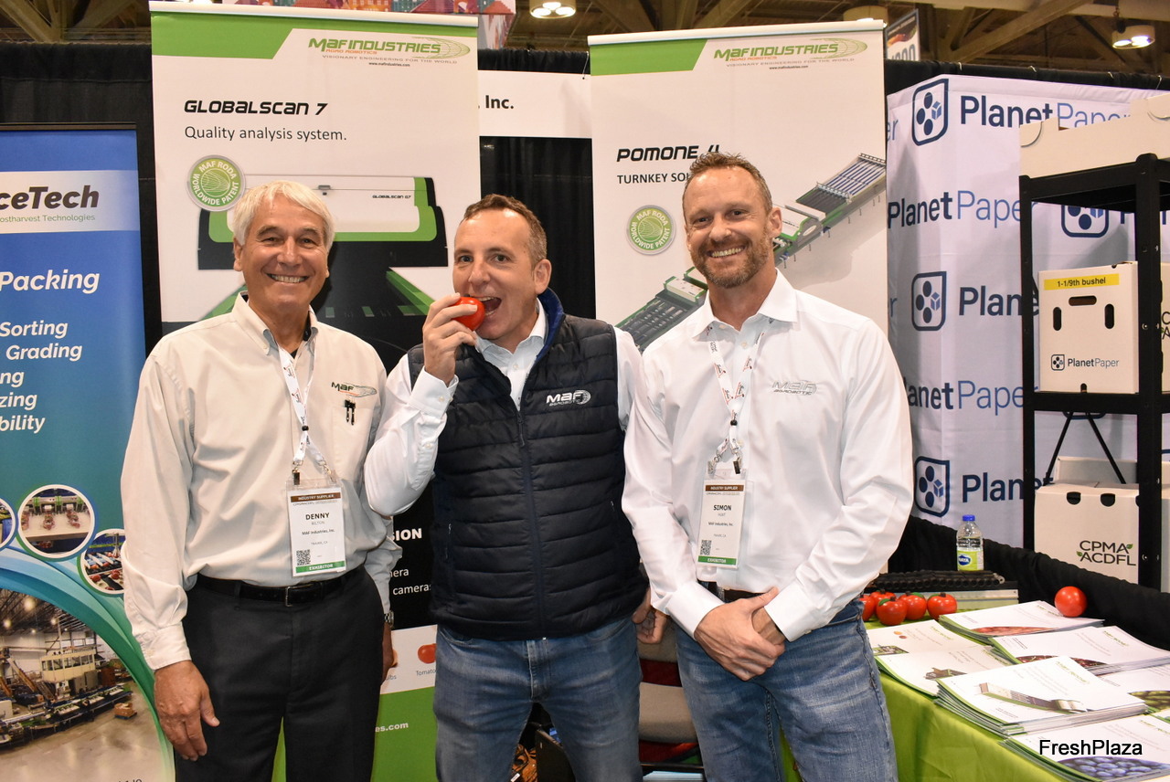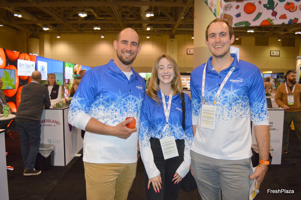 South African brothers Marius (left) and Deon Boonzaier with colleague Mariah Bradley (middle) from Algoma Orchards were happy to attend the show and visit exhibitors.