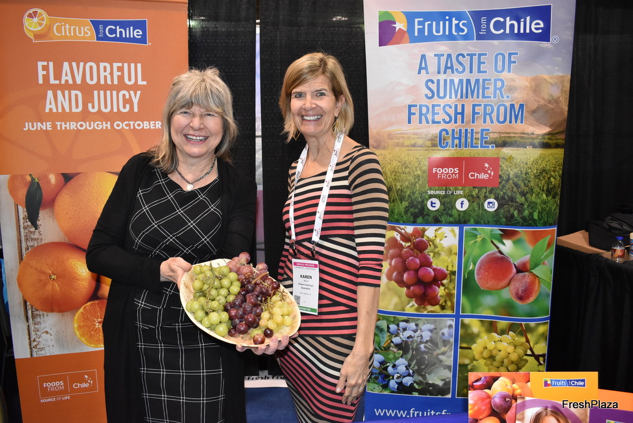 Chris Yli-Luoma and Karen Brux with Fruits from Chile proudly show Chilean grapes.
