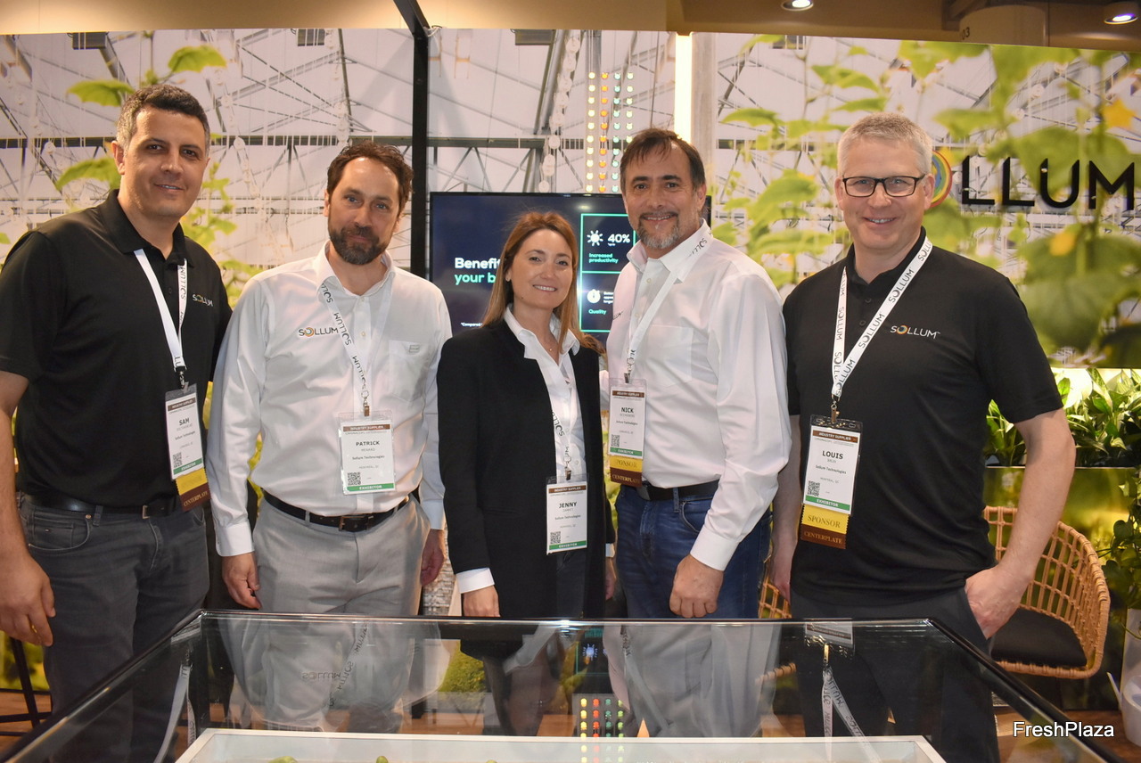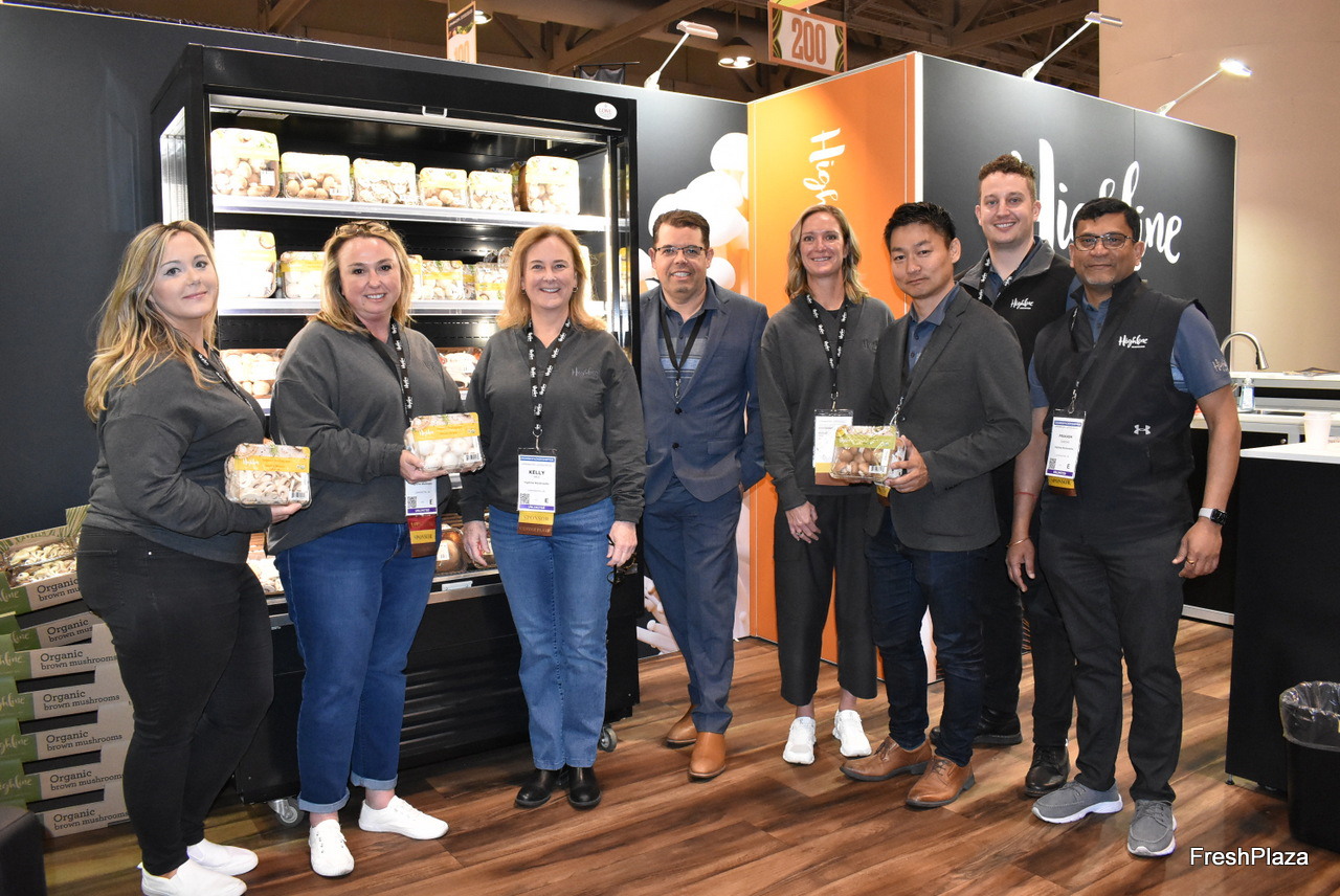 Team Highline Mushrooms proudly shows mushrooms in transparent packaging. Jose Cambon (middle) is the company's new CEO, who came over from Australia.