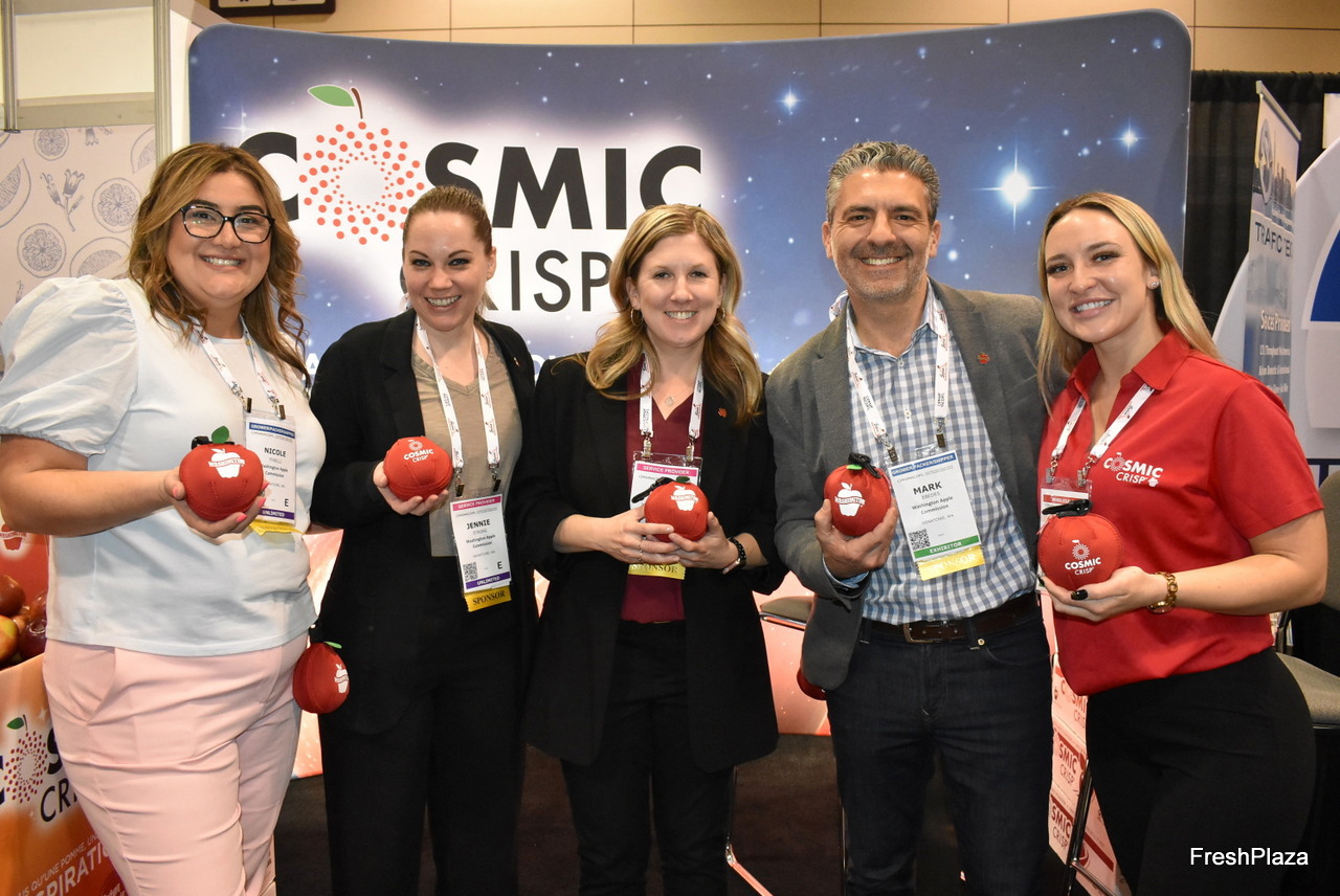 The Washington Apple Commission is promoting Cosmic Crisp apples. From left to right: Nicole Finelli, Jennie Strong, Lindsey Huber, Mark Ebedes, and Lauren Pugh.