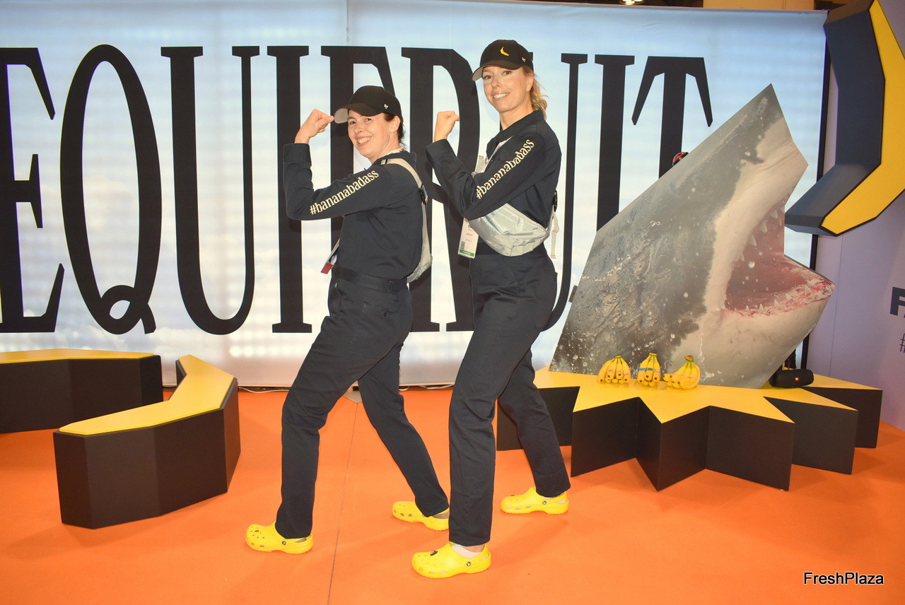 Jennie Coleman and Kim Chackal with Equifruit, promoting Fairtrade bananas.