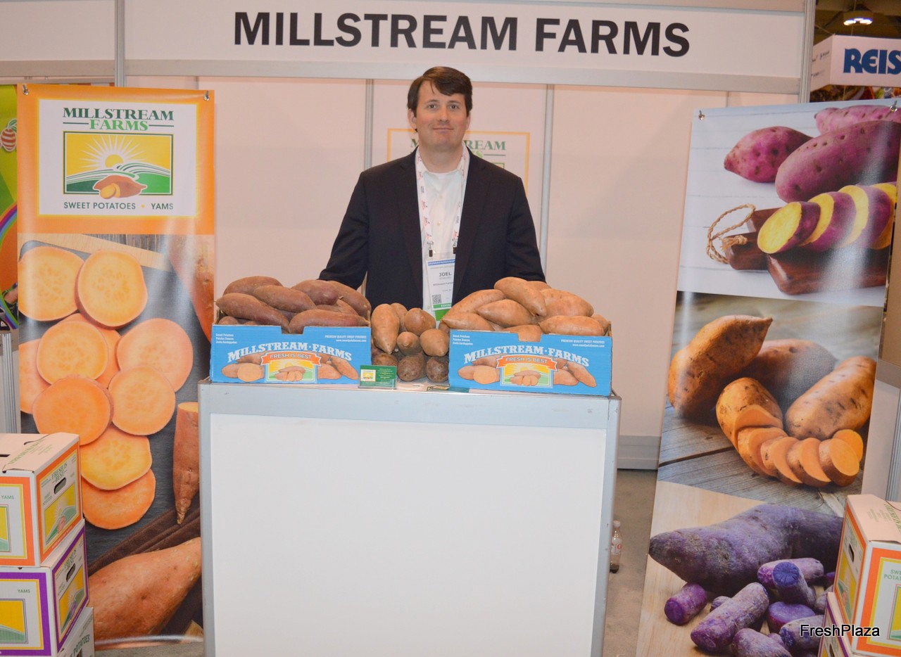 Millstream Farming owner Joel Starling with their sweet potatoes, which is exported from the US to Canada and Europe.