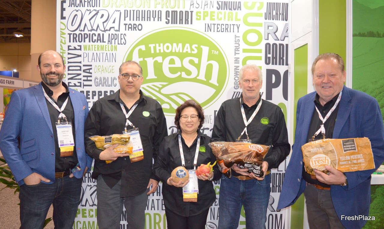 The Thomas Fresh team with their potatoes and exotic fruit.