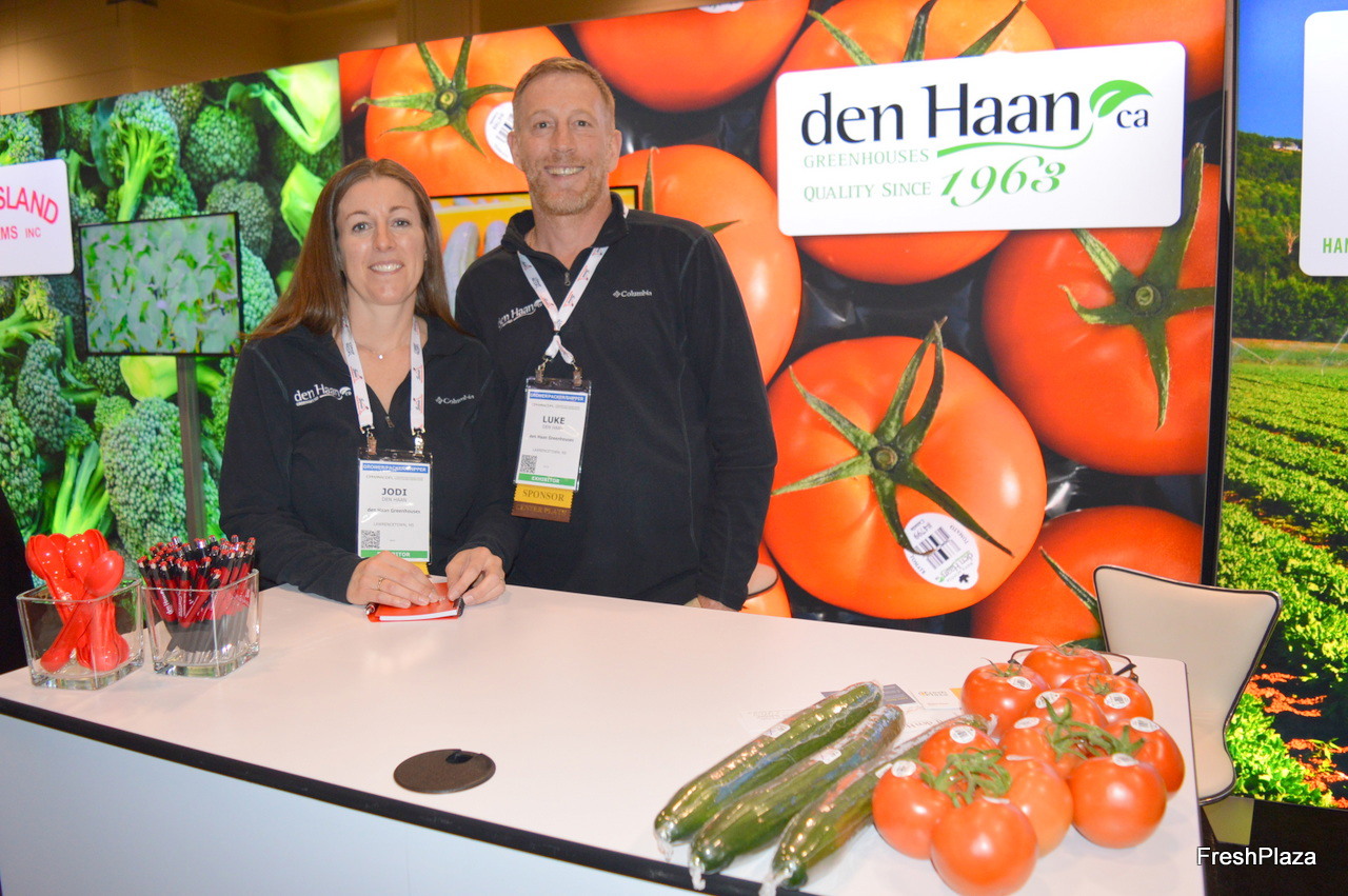den Haan Greenhouses owners Jodi and husband Luke Den Haan produce tomatoes and cucumbers for the local Canada market.