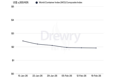 World Container Index decreased 1% to $1,919 per 40ft container
