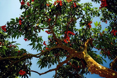 Compared to regular lychees, seedless lychee trees have relatively low yields. Their yield is estimated to reach around 40% of the yield of ordinary lychee trees. The fruit is listed on the market around the beginning of June, and is only available for 25 days. This year, the harvest is late due to coldness in early and late Spring. Most seedless lychees grow in pairs. They have a thin skin and firm flesh, with a high sugar content level.