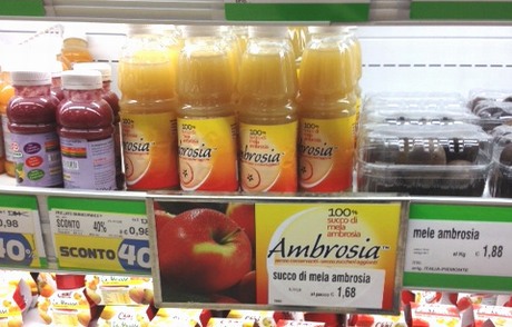 Thanks to the exclusive collaboration with Esselunga supermarkets, the Italian company Rivoira Giovanni & Figli SpA launches its 100% Ambrosia fresh apple juice.Marco Rivoira explains: "This product is a proper 100% Ambrosia fresh apple juice, without sugar and preservatives added."