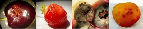 Damages caused by D. suzukii on various fruits. (Photo: A. Grassi).