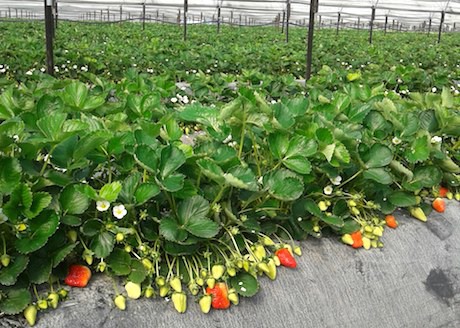 "The fact that there are fruits that are already red as well as having a lot of flowers (see photo above) means that we will probably harvest until 15th-20th May. At peak times, 250 hectares produce 250 tons of strawberries per day."