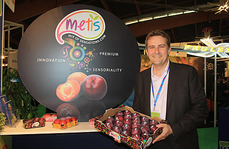 Blue Whale recently became the exclusive distributor of the new Metis line. Andere verdelers zijn Royal, Zani, Minguzzi. "Metis is a special range of fruit with various flavours and colours," says Frank Alluine, salesmanager in France. "It is a cross between a plum and an apricot. Its name stands for Most Exciting Tasting Inter Specific. Metis is a new generation plum fruit developed in 1950 by the Californian breeder Glen Bradford. The product is available in different colours and flavours between June and October, thus extending the plum season to five months."