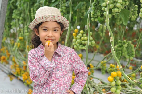 This young visitor couldn't resist the new tasty yellow cherry tomatoes