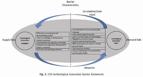 Scientists summarise that whilst some of the barriers identified through this study are found within the literature, several aspects may be more novel to the context of CSA; specifically, these include the difficulties of technology providers in demonstrating and proving the value of their technological innovations, a lack of access to and knowledge of capital and finance (although this relates somewhat to cost barriers) and difficulties in accessing and reaching customers.