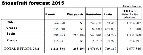 This season's peach forecast was released at EuroPeche at MedFel, France. On a European level, if compared to 2014, harvest forecasts indicated a stable 2015 harvest, with +1% in peaches, flat peaches and nectarines, reaching slightly less than 3 million tons and +2% in pavies with 770,000 tons.