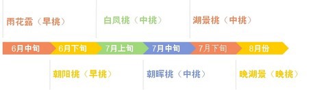 "Yuhualu honey peaches represent the honey peaches of Yangshan. The supply period lasts two weeks. In mid July, the peaches are in full bloom. At this time, the Chaohui peaches are ripe. These are bigger, with a more stable sugar content and are produced in bigger quantities. Ar the end of July, the Yangshan peaches with the best reputation, Hujing peaches, go on sale."