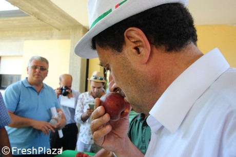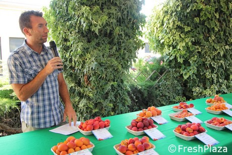 Stefano Foschi, researcher from Crpv, ieri, during the apricot display in Imola (BO).