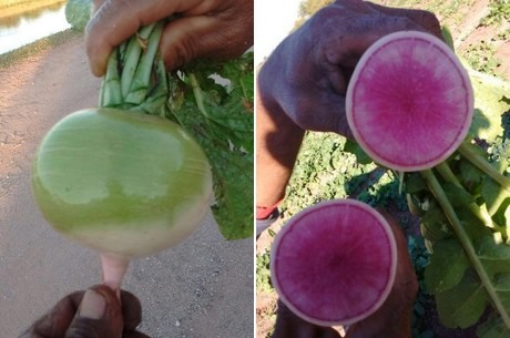 The Mexican climate and soil are very favourable for the cultivation of watermelon radish, as they are very similar to those of the Chinese region where they are usually grown. "They also tried to produce it in New Zealand, but it grows completely white there, without the pink centre, which is its particularity," explains López.