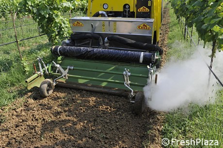 Celli presented its steam pest control machine. Its purpose is to debug the soil organically. Thanks to an exothermic reaction given by steam and quicklime, the latest evolution of Ecostara reaches temperatures suitable to eliminate nematodes, fusarium, sclerotinia and, in some cases, even the seeds of weed plants.