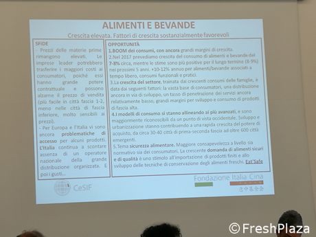 Alberto Rossi, marketing manager and analyst for Centro Studi per l'Impresa della Fondazione Italia Cina, illustrated the data of the Fondazione Italia Cina Annual Report. It emerged that the Italian produce is popular because of its high quality and that there is now more attention to food security and marks. In addition, in 2020, e-commerce is expected to be worth $180 billion."