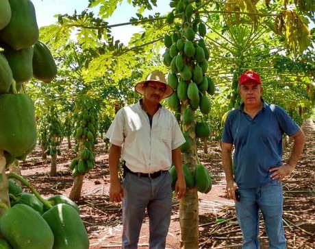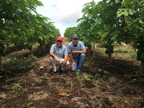 Papaya grower David Ulises in his Maradona field,together with Enrique Vasquez, a papaya expert and EWS employee in Mexico.