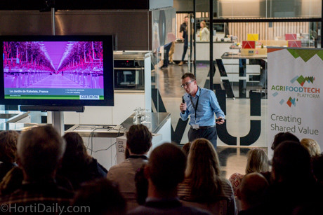 Certhon. He showed a picture of Jardin de Rabelais, a French greenhouse grower with an LED-lit semi closed greenhouse. When this tomato grower has its screens and vents closed, he is basically growing in a completely controlled environment. "In fact, this is a big indoor farm. So what is the exact definition of an indoor or vertical farm. There is a gray area in between both."
