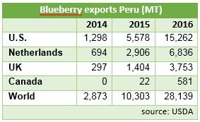 Five years ago, there was no significant blueberry cultivation in Peru. At present 4,000 hectares are being used. In the near future, this area is sure to increase. Despite the high costs involved in this type of farming - about $6, 000 per hectare - it is an attractive option for farmers in this country. Profit margins are high and in La Libertad, where most of the farms can be found, harvesting can take place almost year round. This is thanks to the mild, warm, dry climate.