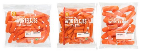 The various types of packaging that washed carrots are sold in