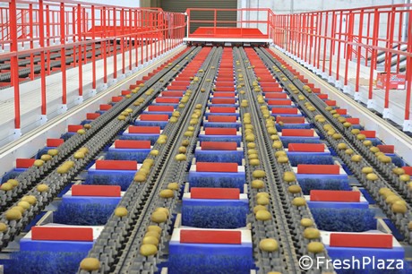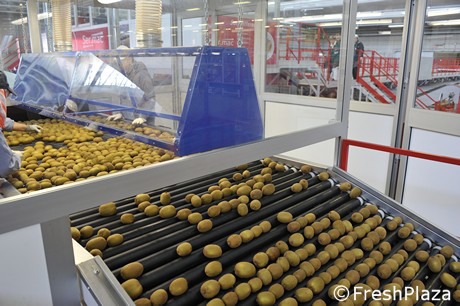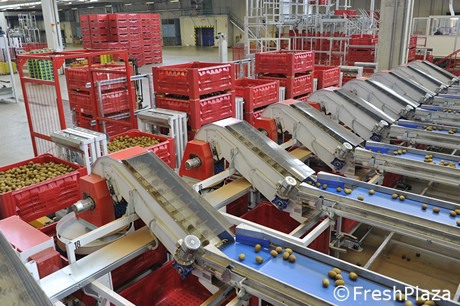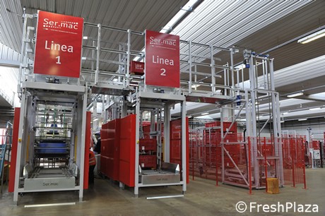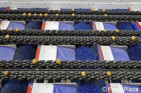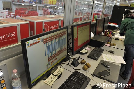 "It's currently the most powerful plant in Europe thanks to its 8+8 lines and 32 outlets. The packaging line is made up of two parallel systems and can process up to 18-20 tons an hour. The quality system detects all variables and external defects as well as the internal quality of each single fruit (soft parts, dents, insect damage, rot, over-ripeness)."