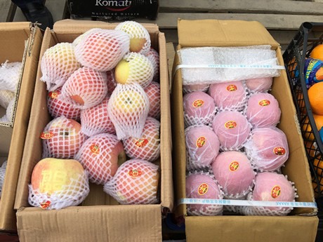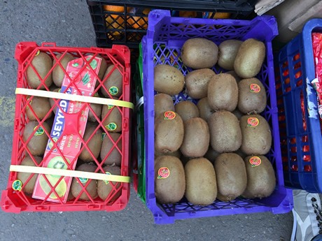 The imported products include Navel oranges from South Africa, kiwis from Iran, lemons from Turkey and tangerines and Fuji apples from China.