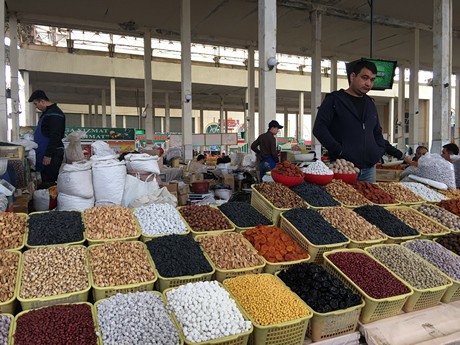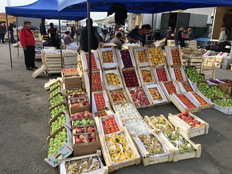 Fruit on the market in the biggest volumes in autumn are table grapes (which Uzbekistan produces and exports), apples, pomegranates, persimmons, Asian pears and European pears including Abate Fetel.