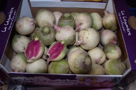 Also on offer at the Munich wholesaler: colored radish tubers with red pulp