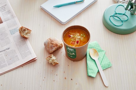 JUST introduced their Soup TO GO during the Compass FoodFocus days. "We got a lot of very enthusiastic reactions", says Perrin Aarts, JUST's Marketing & Innovation Executive. "Soup TO GO is an innovation specifically aimed at the convenience market. Soup TO GO can already be found in a number of large company canteens and the canteens of 50 Dutch high schools. It is also very suitable to sell at To Go points."