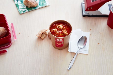 JUST explains the concept as 'pure and fresh, just like Mum makes it'. "Everyone recognises the unique taste of homemade soup like Mum used to make. JUST wants to make this experience available to everyone everywhere", says Perrin. "The starting point is that is pure and simple, just like Soup TO GO is. With fresh, finely sliced vegetable and a broth; consumers just have to add hot water. In this way, the vegetables retain their tasty, natural bite and vitamins. Stir once, let stand for a minute, and it is done. Once done, anyone can enjoy a bit of tasty soup, even during the hustle and bustle of a busy day on the go. The cardboard cup ensures that the soup stays warm, but your hands do not get burned."