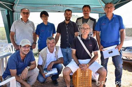 Italian and Japanese United Genetics staff plus guests. Standing, left to right: Mario Martinelli (GM United Genetics Italia), Masatoshi Ichikawa (Kagome Japan), Gaetano di Maio (Sparanise nursery gardener), Luca Iacovacci (Fondi producer), Antimo Pedata (United Genetics representative for Campania). Crouching, left to right: Maurizio Di Martino (United Genetics technician for Sicily), Andrea Campus (Sales and P.D. Manager United Genetics Italia) and Giuseppe Manilia (Breeder United Genetics).
