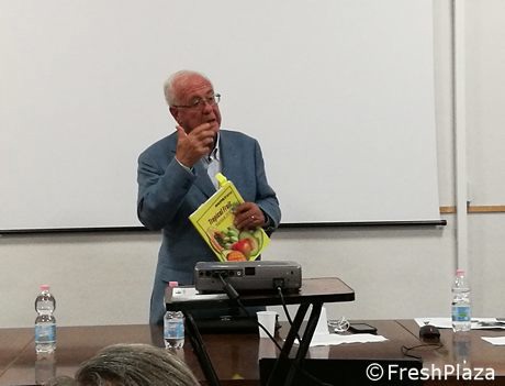 Giovanni Continella holding the Tropical Fruit Yearbook 2018, distributed at Macfrut in Rimini