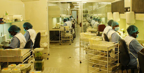 It takes laboratory staff six months to become sufficiently adept at the multiplication process to reach their target of 3,500 multiplications per day, or 1,800 pieces rooted and graded into small, medium and large.