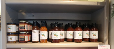 The hot, dry summers in Northern California sometimes negatively impact the skin of the fruit. To prevent damaged fruit from being thrown away, Newcastle Mandarin Ranch started juicing mandarins about 12 years ago and made jelly out of them. “Since then, we have expanded the line of side products.” Today, the ranch sells bbq sauces, pepper sauce, marmalade and salad dressings, but also freshly squeezed juices as well as milk shakes. All side products are professionally prepared at a nearby co-packing company in Auburn, CA. “They are all high-quality products and made from scratch,” mentioned Lewis. For some side products, like bbq sauce, only the best mandarins are used as the product includes mandarin rinds as well. Interesting fact is that it takes 13 lbs. of mandarins to make a half gallon of juice.