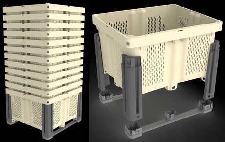 "The Hybrid 1012 is 1,000 mm in length, 1,200 mm in width and 790 mm in height," she said. "It is the ideal bin for transporting goods globally with dimensions optimized for shipping. The bins achieve greater shipping efficiencies with their ability to nest inside each other. A farmer would be able to assemble the bins on-site, use them during harvest, ship anywhere in the world to their vendors, and have the bins sent back to them in the nested configuration."