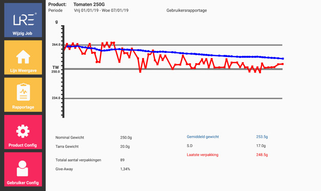 For customers without software registration, we often see that they do not know what is going on in the workplace. Packages are sometimes randomly checked for content and weight, and nobody bothers about the weighing speed of employees. For example, LRE saw at one of their own customers that the percentage of give-away per package had unnoticed gone up to as much as 5%. On a weekly basis, this amounted for the grower to a large part of the realized profit. With the deployment of smart weighing and software modules, LRE has reduced this to a give-away of almost nil.