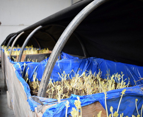 The supply of sea kale usually starts in December. Demand is at its highest in that month. "However, the dry summer meant cultivation started a little later," says Jean-Pierre. "The product's quality is, however, perfect," The current crop can be compared to chicory or forced rhubarb. In the past, people living in the coastal areas already forced the growth of these wild plants.