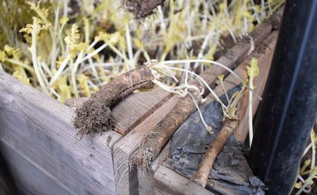 A sea kale root, seen after years of propagation from the first sea kale plants obtained in 2006.