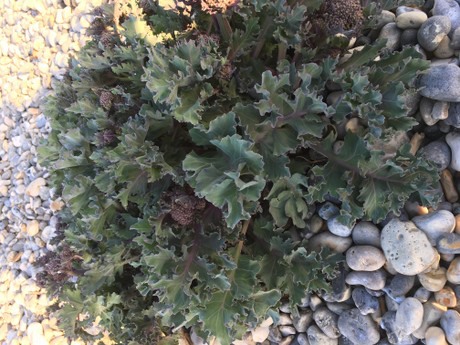 Wild sea kale on a pebble beach. Only the young shoots are good to eat.