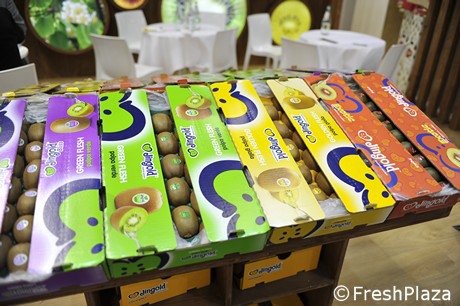 Jingold now boasts 1300 hectares of Jintao, 250 of Jinyen and around a hundred of Oriental red kiwis. Only 10% of golden kiwis are sold in Italy, the rest goes to Europe and overseas.