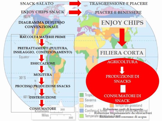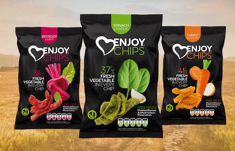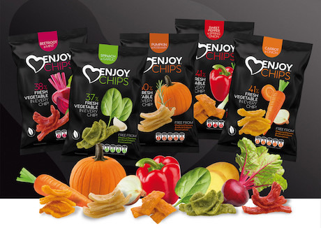 With Enjoy Chips, the objective is to supply a functional snack using only whole vegetables produced with a natural process with no refining.