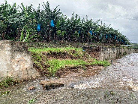 Flooding has caused damage to infrastructure, but the absence of strong winds has spared banana plantations