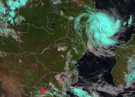 Tropical cyclone Kenneth hurtling towards Mozambique (Image: South African Weather Service)