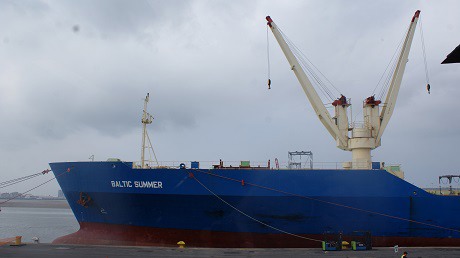 The Baltic Summer reefer vessel being prepared to take its first break bulk shipment to both Japan and China