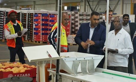Minister Zokwana shown around the inspection tables by Kuben Naidoo of the DAFF inspection services in KwaZulu-Natal and by MFT staff